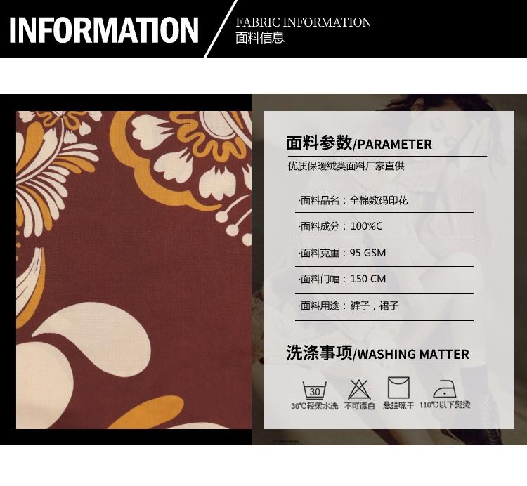 用途 | 褲裝 裙裝 | 品名 | 全棉數(shù)碼印花 |